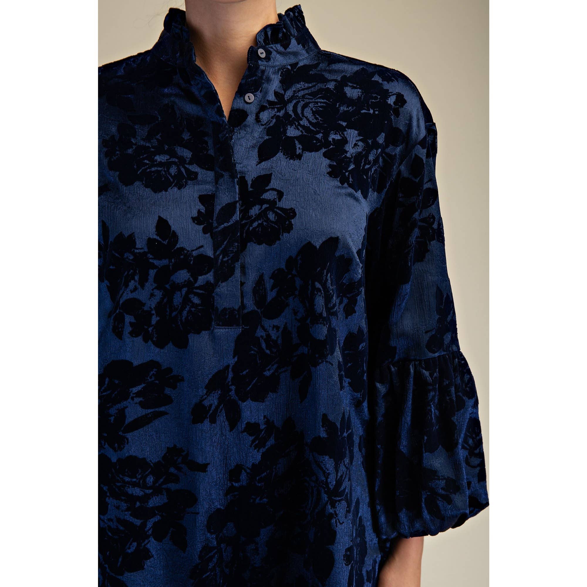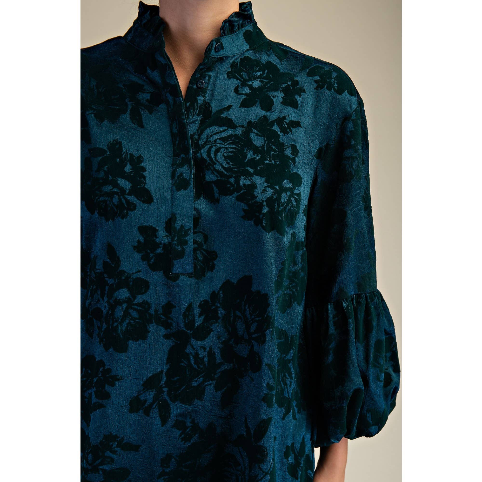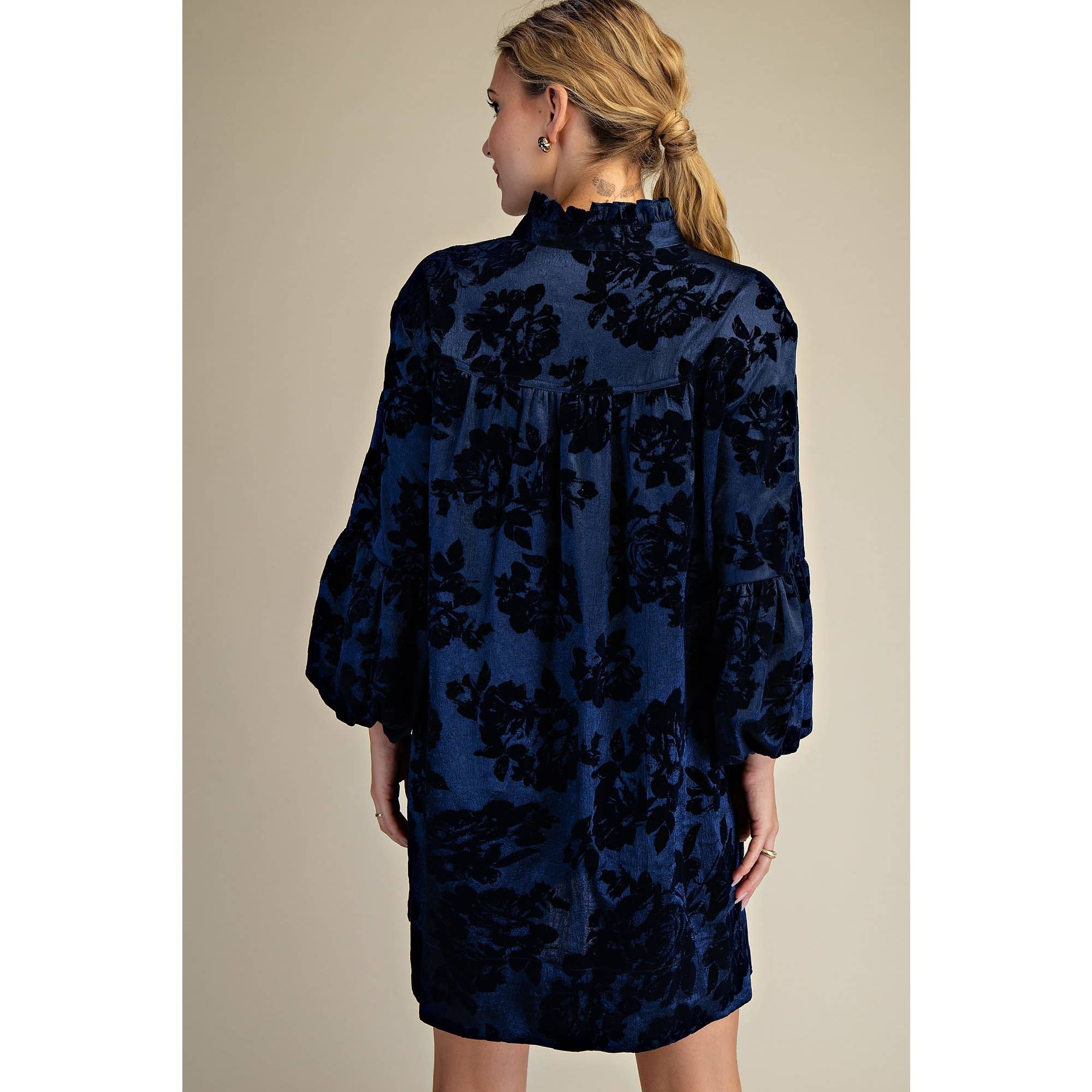 Ruffled Neck Bubble Sleeve Dress - Model Height: 5'8" Wearing Size Small - SELF: 100% Polyester - LINING: 100% Polyester