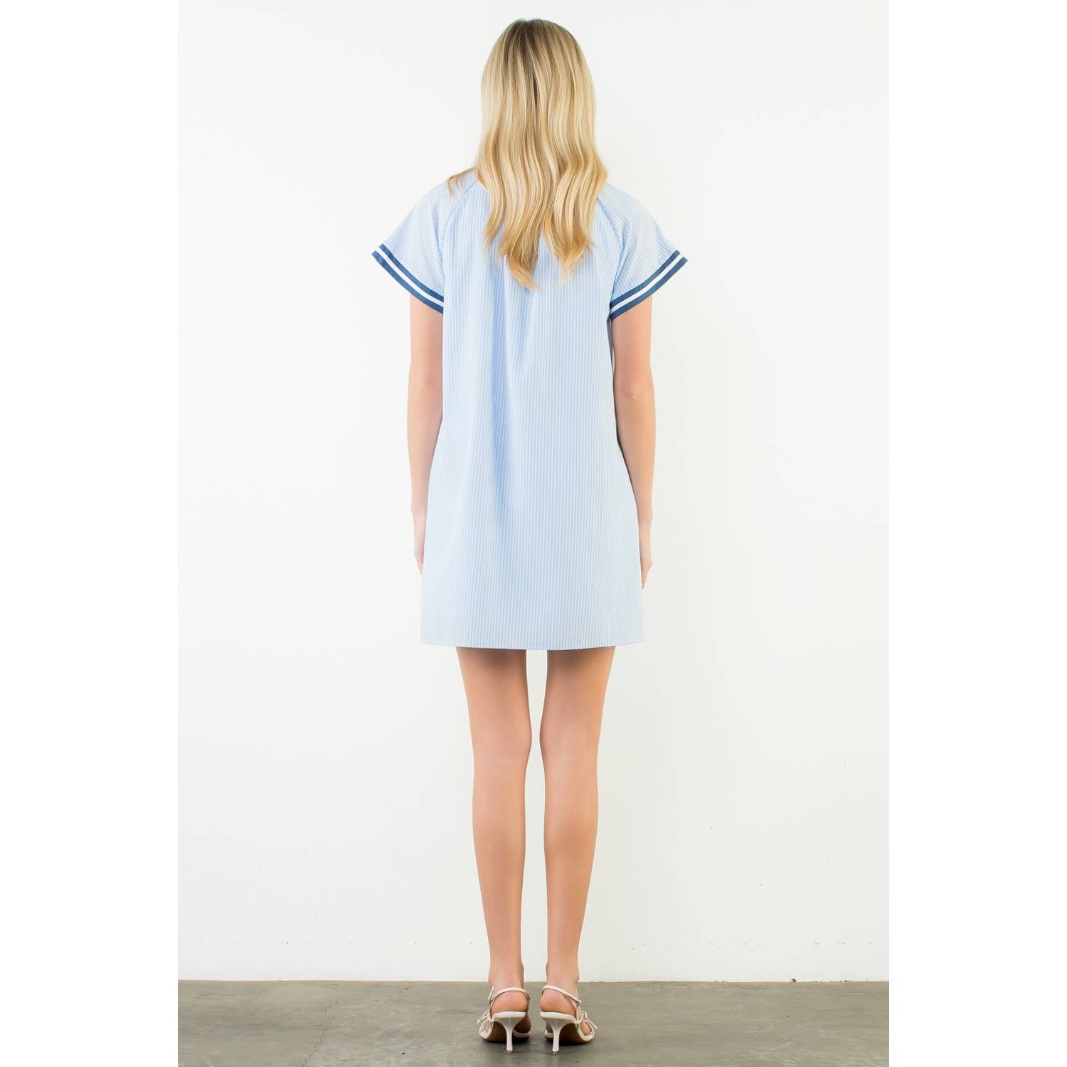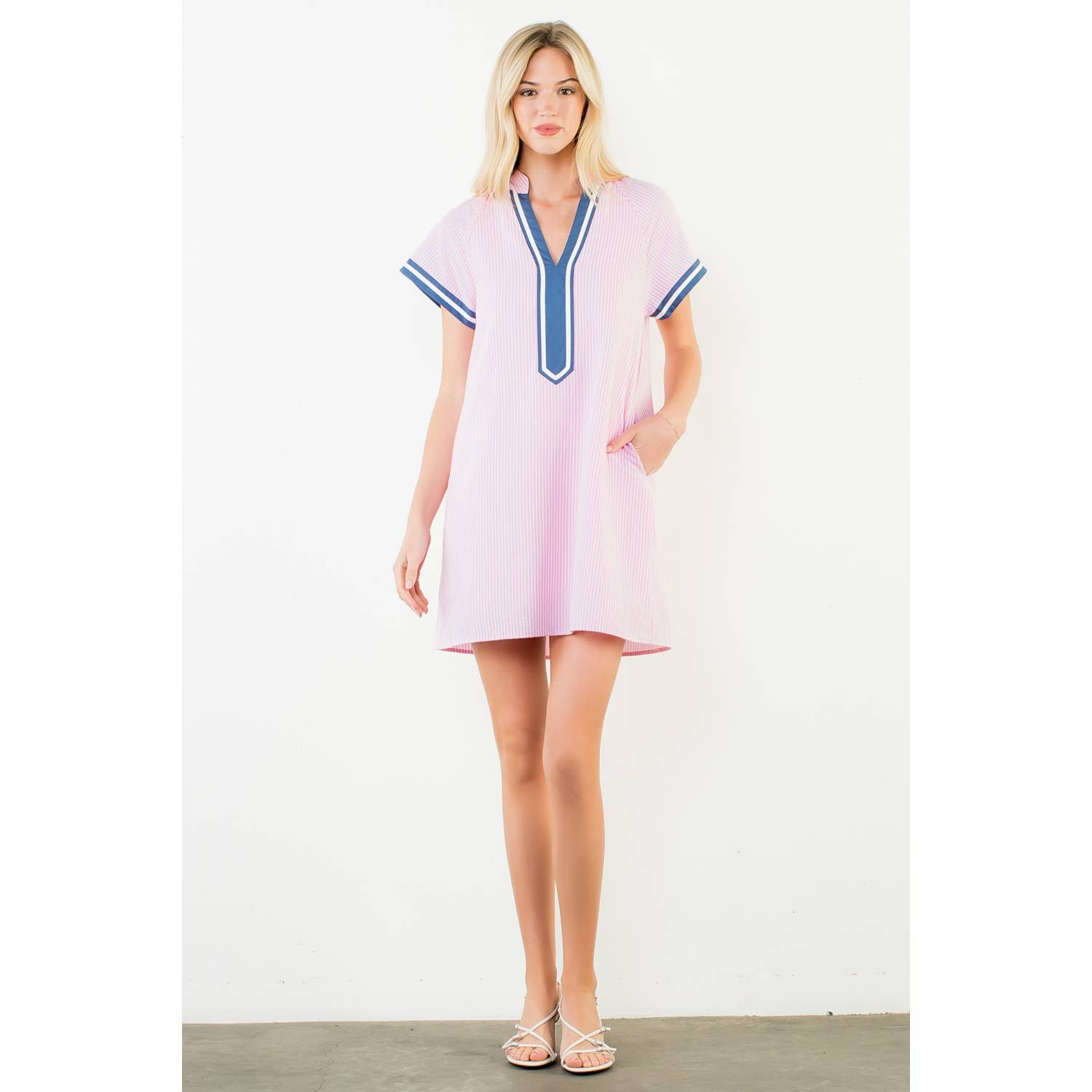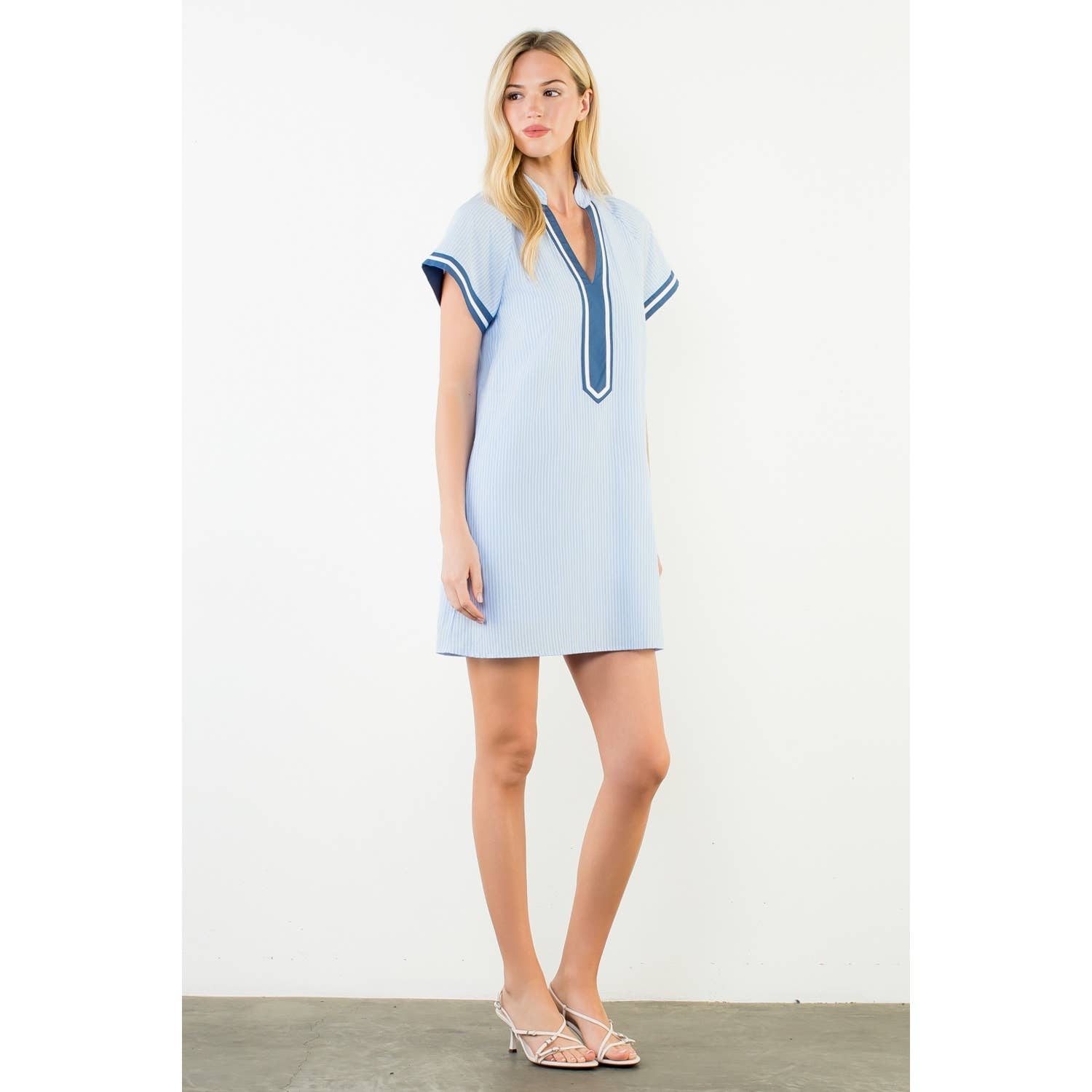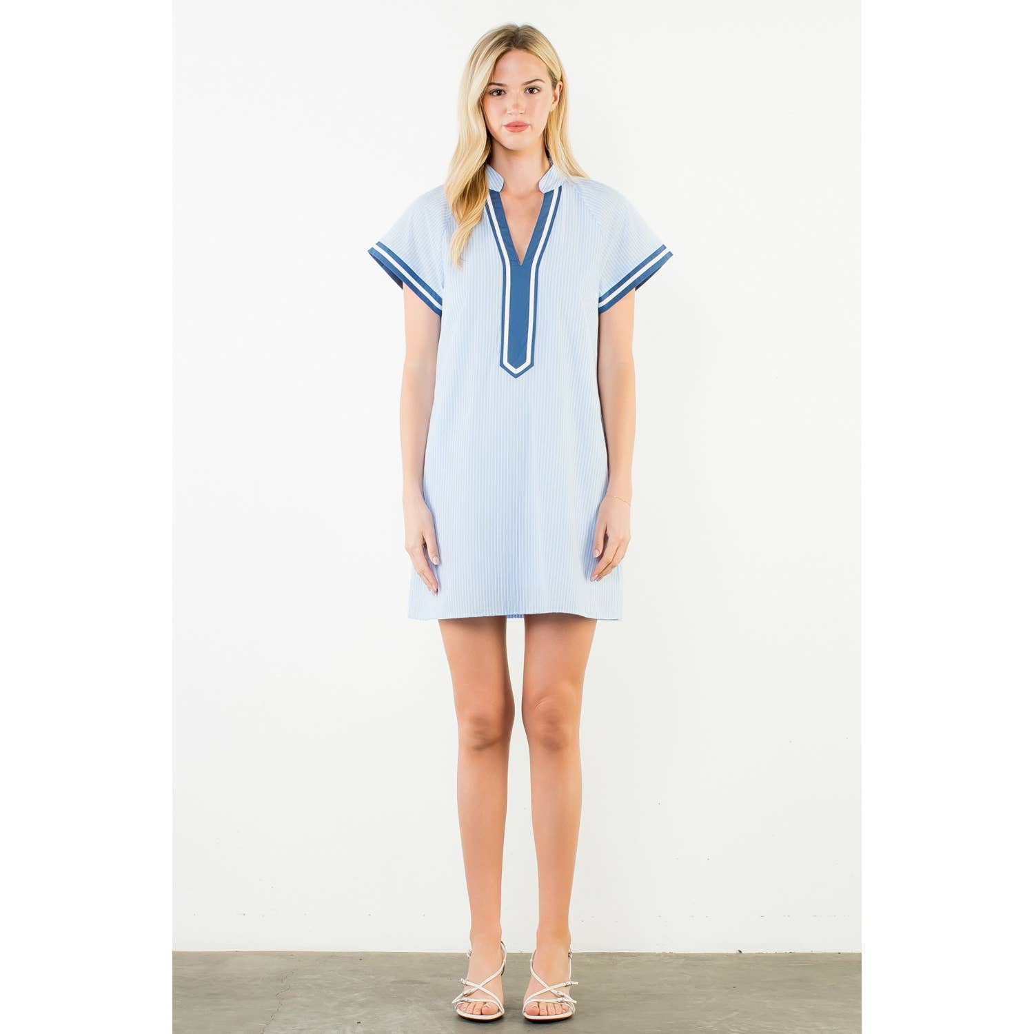 Short Sleeve Striped Textured Dress .