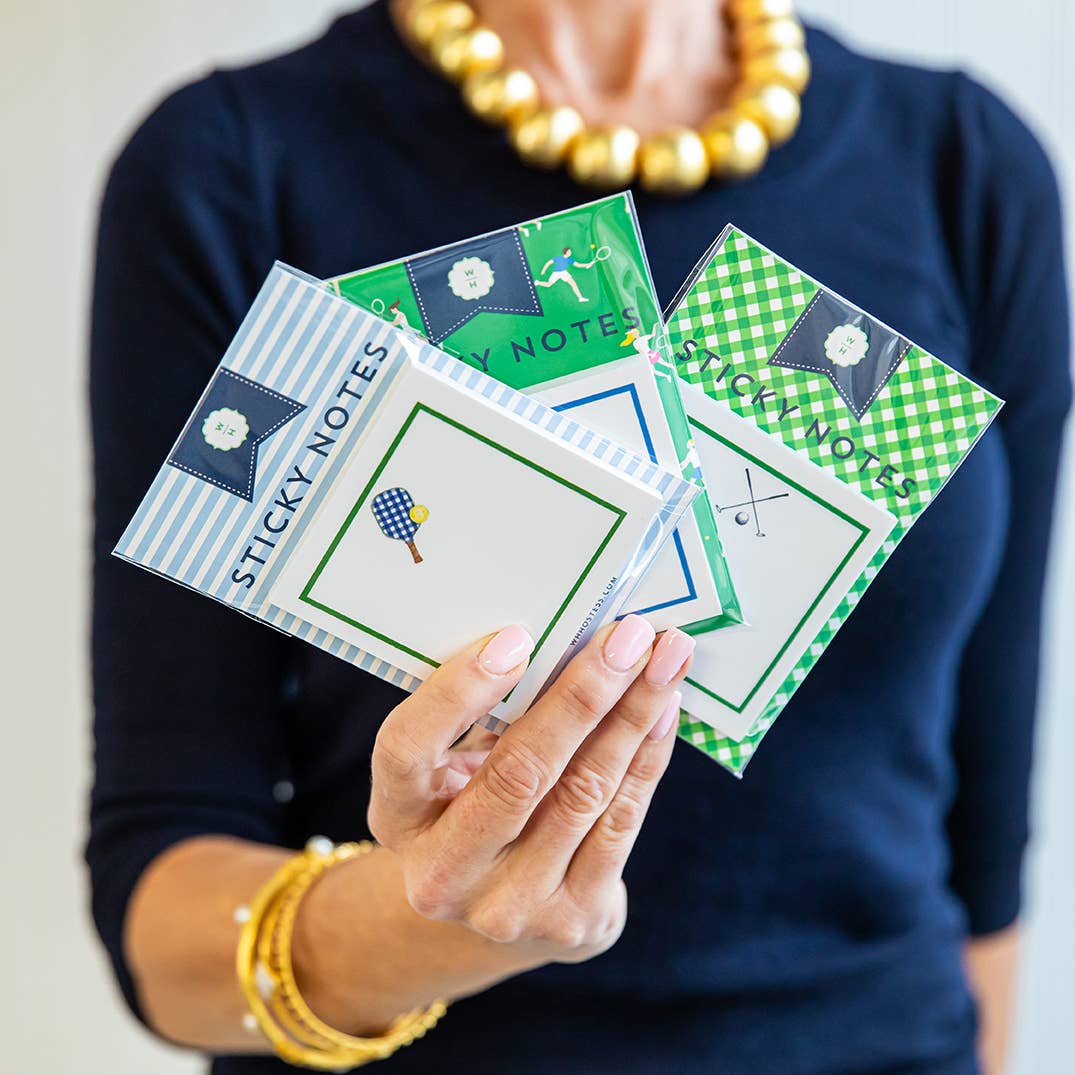 Small but mighty, our new sticky notepads are DARLING!! A 50-page notepad with adhesive on each back, it is attached to a printed card (for easy removal).