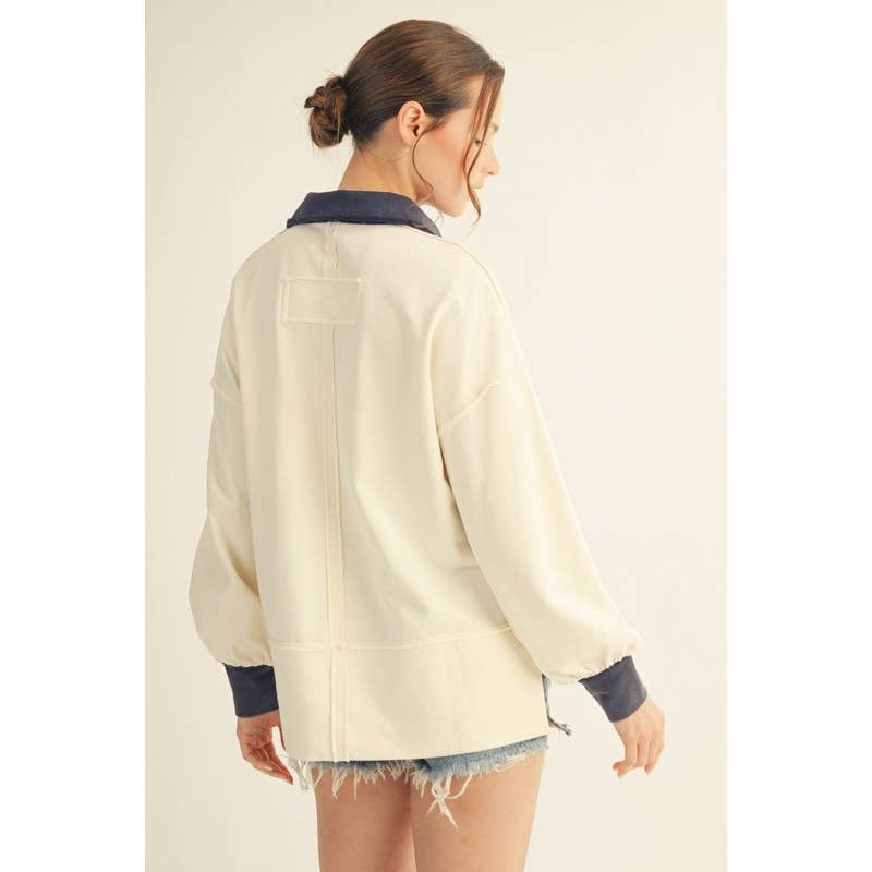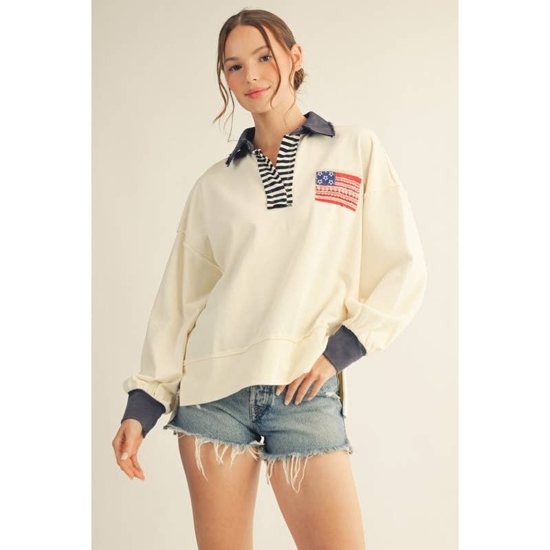 American Flag Polo Sweatshirt -Ivory