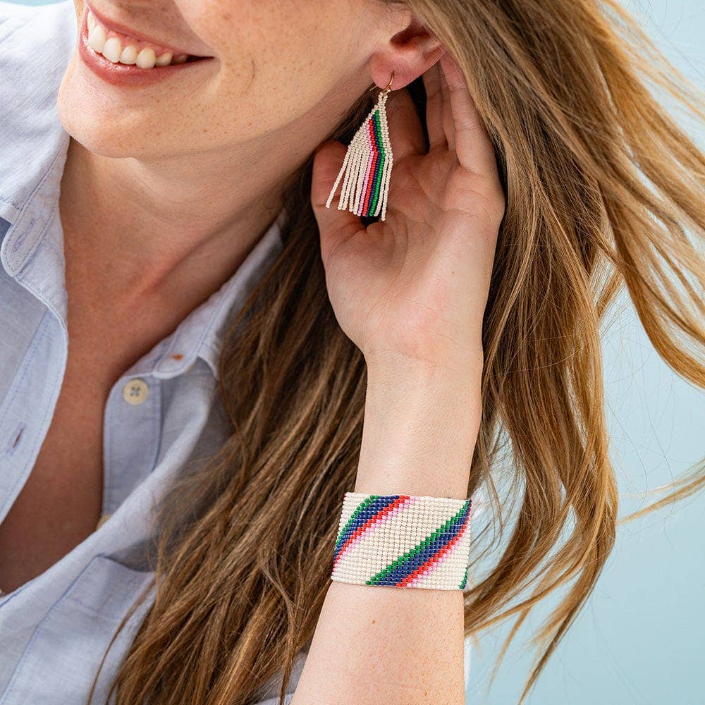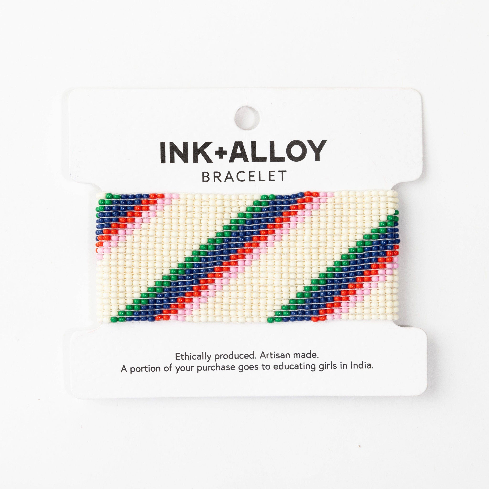 INK + ALLOY - Penelope Stripe Diagonal Seed Bead Bracelet Ivory Navy Green Red