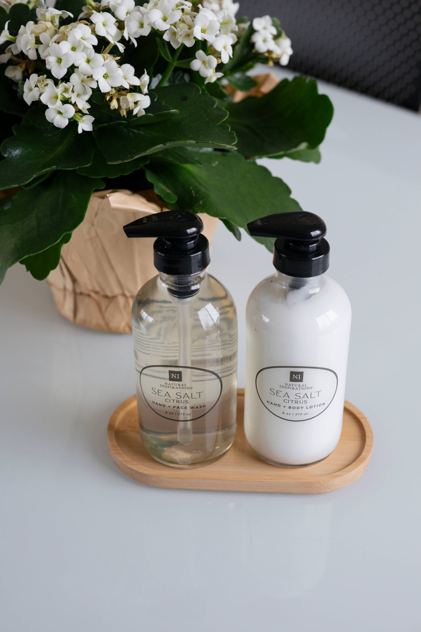 Our customer favorite Hand + Face Wash is now available in our Sea Salt Citrus signature fragrance in beautiful, eco-friendly glass bottles!